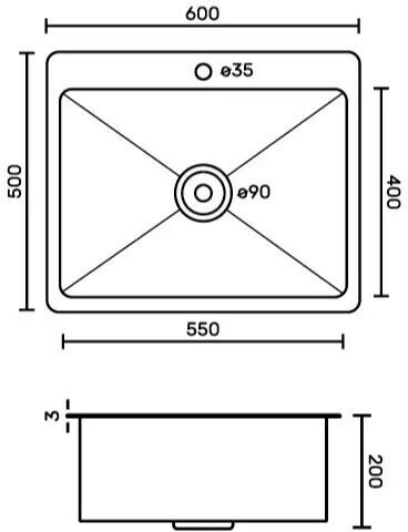 Мойка врезная FABIA PROFI - 60х50 см, 60503D, толщина 3,0 х 0,8 мм, глубина 200 мм