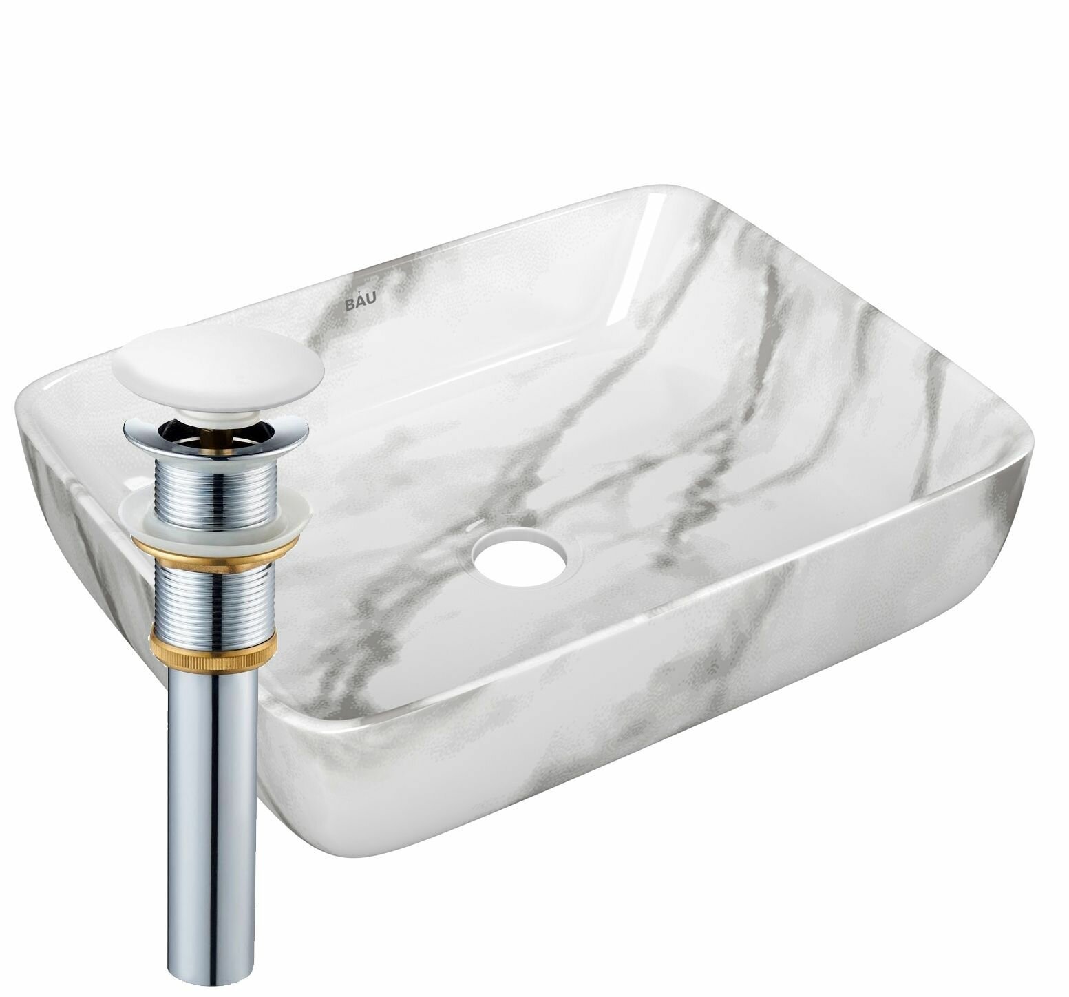 Купить Раковина накладная прямоугольная BAU Hotel 48х37, мрамор + выпуск клик-клак, белый