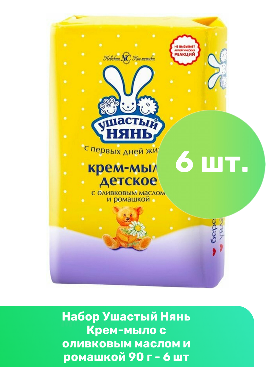 Купить Детское крем-мыло Ушастый нянь с оливковым маслом и ромашкой 90 г х 6 шт