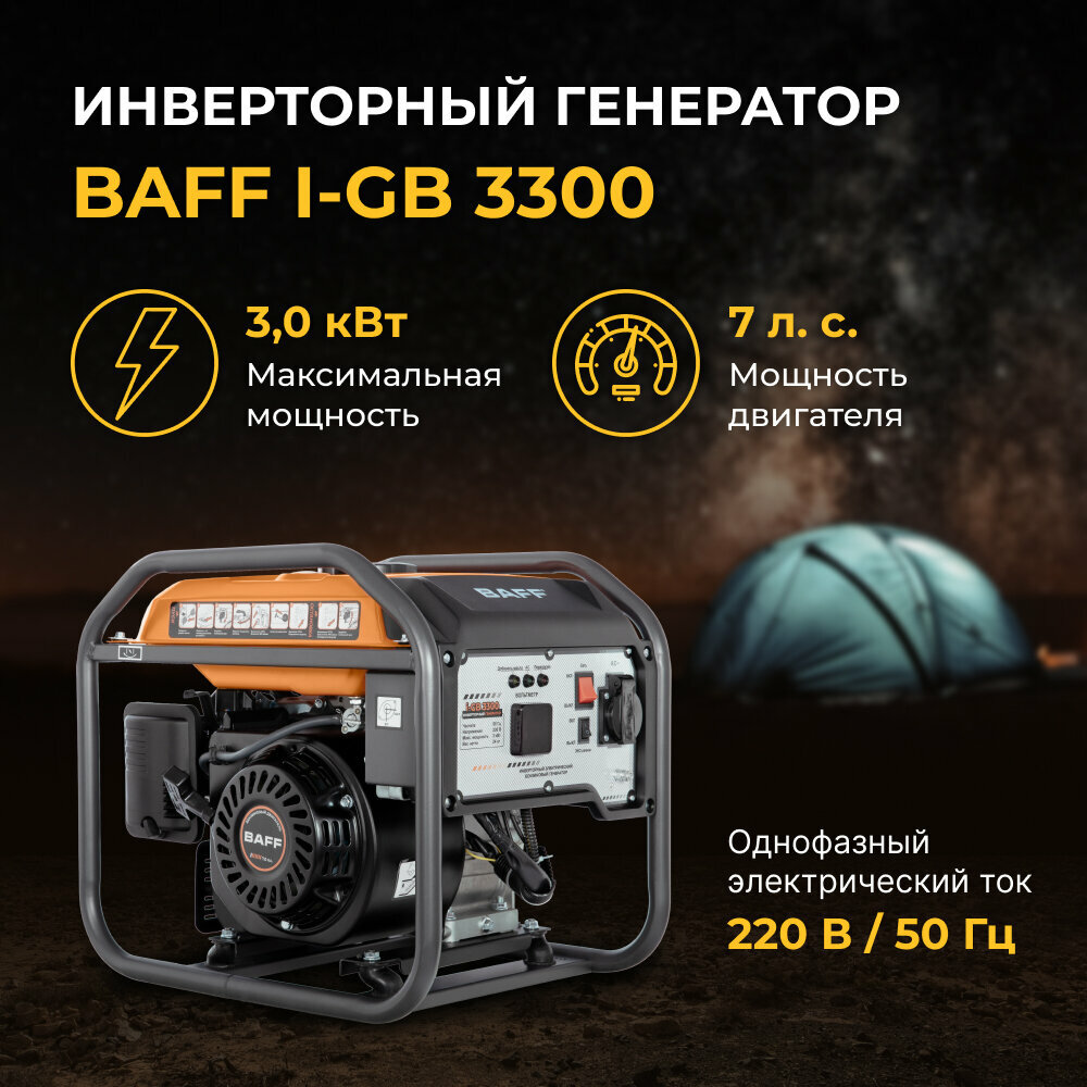 Купить Генератор BAFF i-GB 3300 инверторный, объем бака 8 л, мощность 3,0 кВА