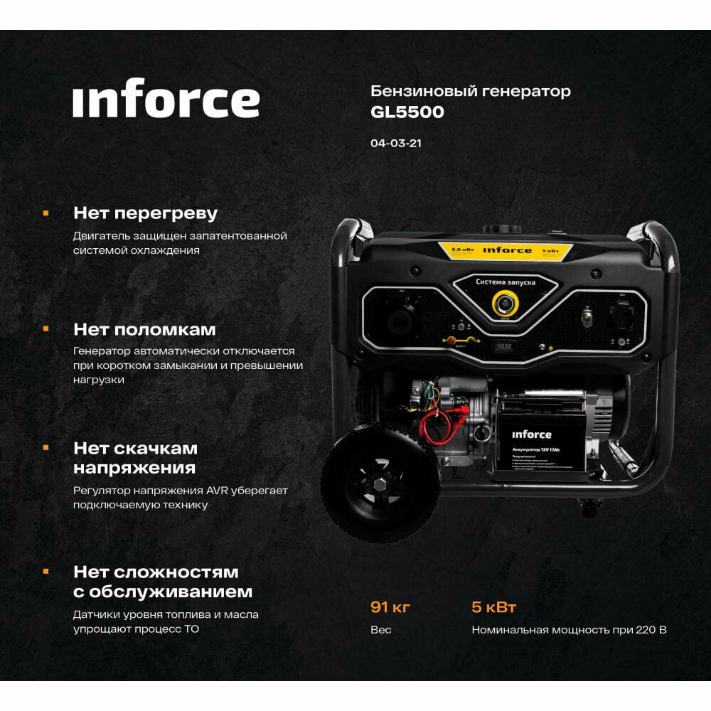 Бензиновый генератор Inforce GL 5500 04-03-21 интересное: