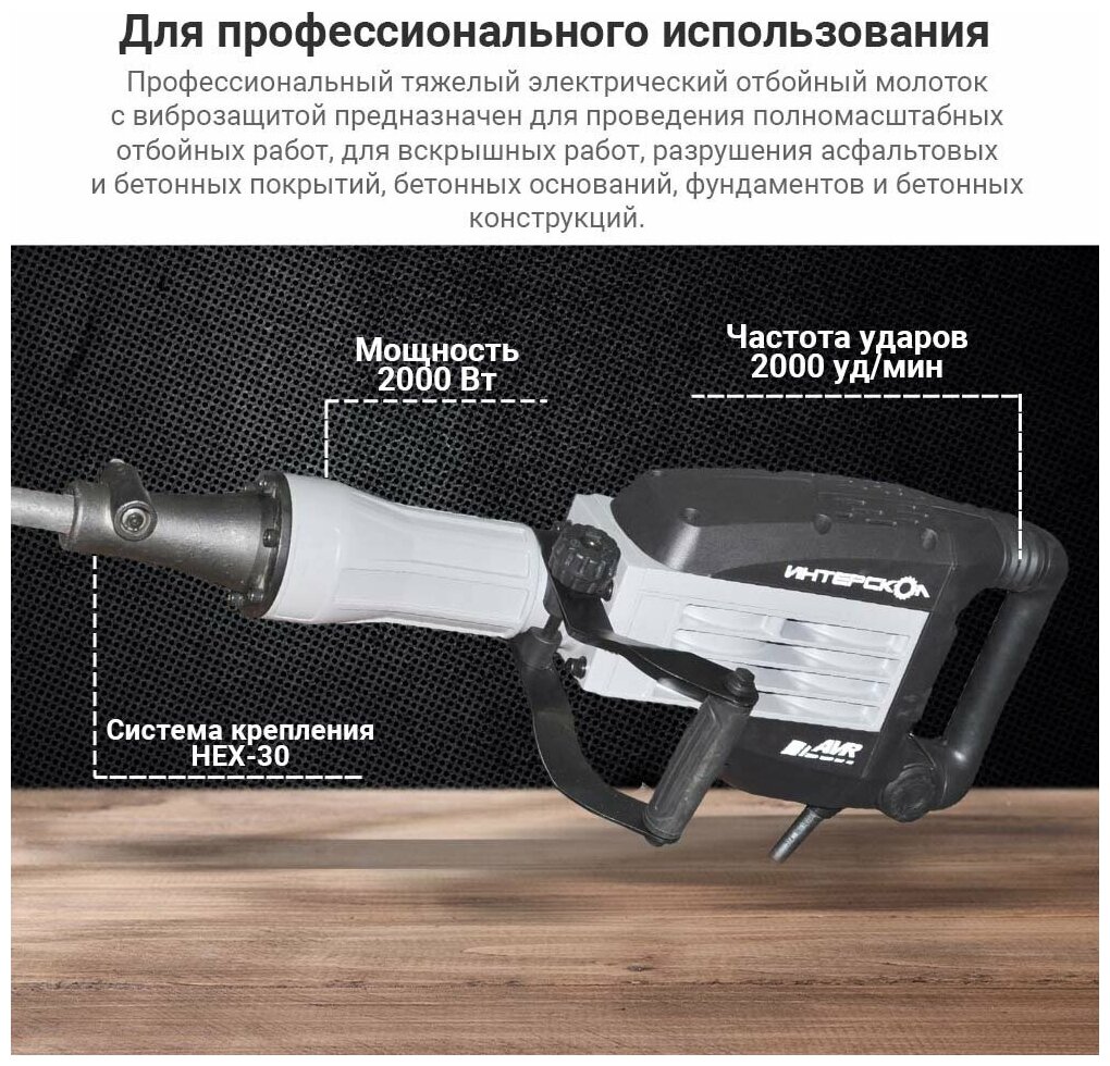 Отбойный молоток HEX30, 40Дж. Интерскол М-32/2000В / 531.0.0.00