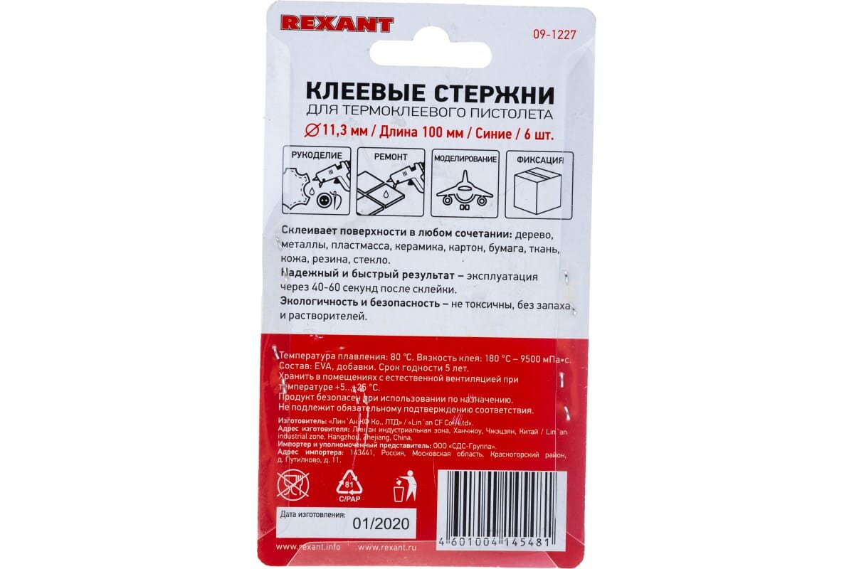 Купить Клеевые стержни Rexant 11х100 мм синие 6 шт. 09-1227