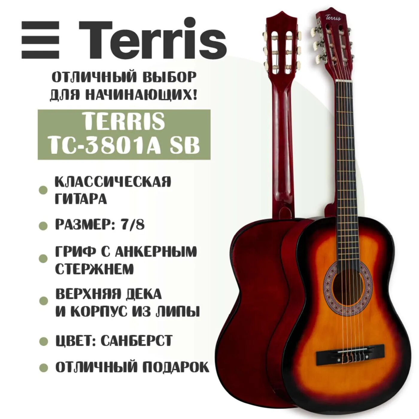 Музыкальный инструмент TERRIS Гитара классическая 7/8 TC-3801A SB санберст