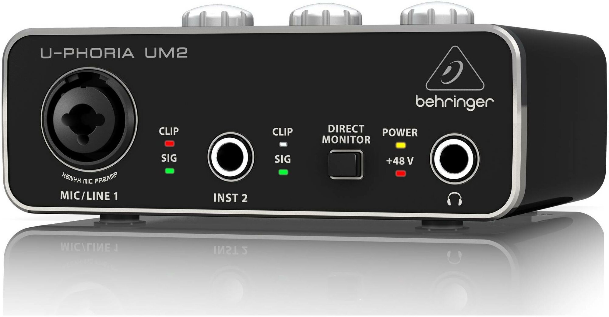 Behringer UM2 внешняя звуковая карта (звуковой интерфейс), USB2.0, 2 вх/2 вых канала интересное: