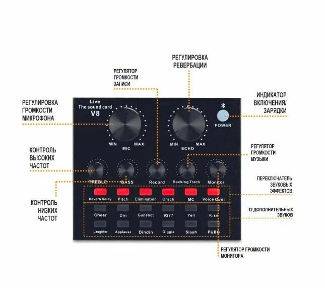 Внешняя звуковая карта V8 для микрофона / микшер интересное: