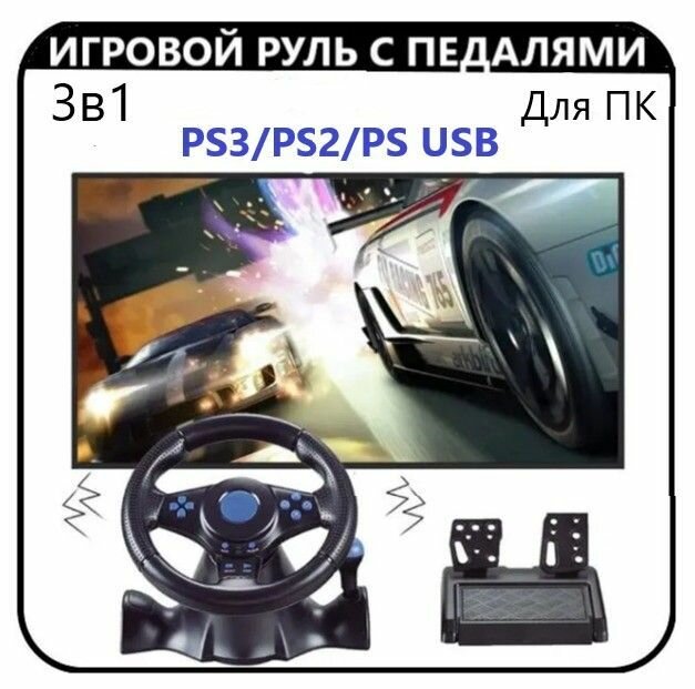 Игровой руль с педалями для ПК, PS3/PS2/PS USB интересное: