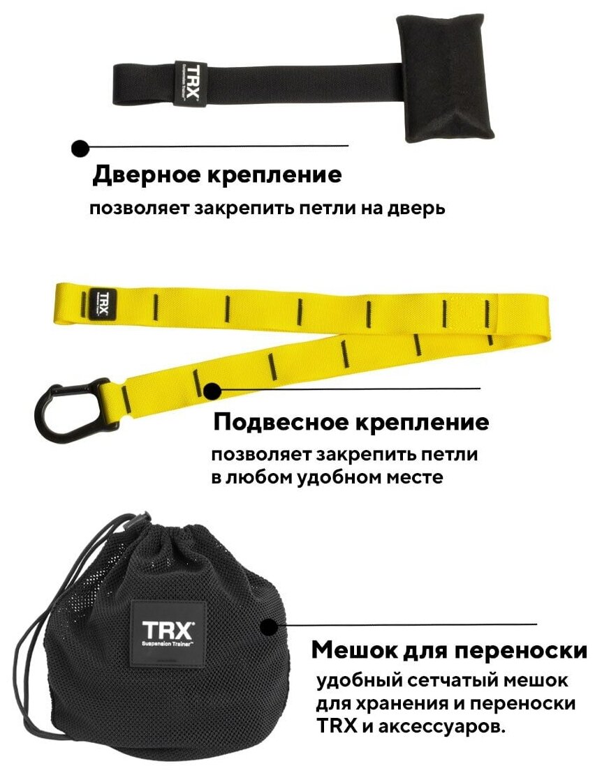 | Подробная комплектация | ПЕТЛИ TRX MOVE SYSTEM, ПОДВЕСНОЕ КРЕПЛЕНИЕ, ДВЕРНОЕ КРЕПЛЕНИЕ, МЕШОК ДЛЯ ПЕРЕНОСКИ, ПЛАКАТ |
