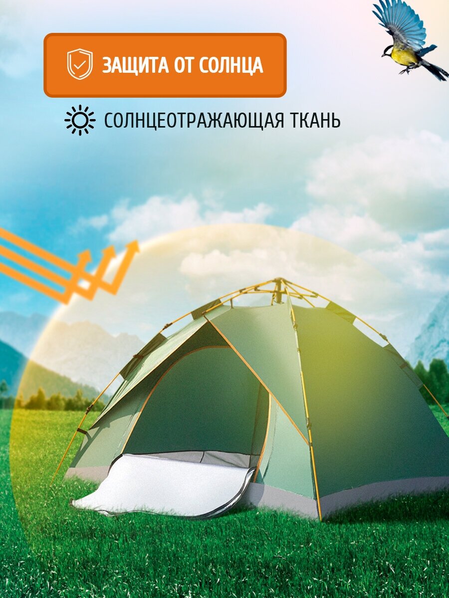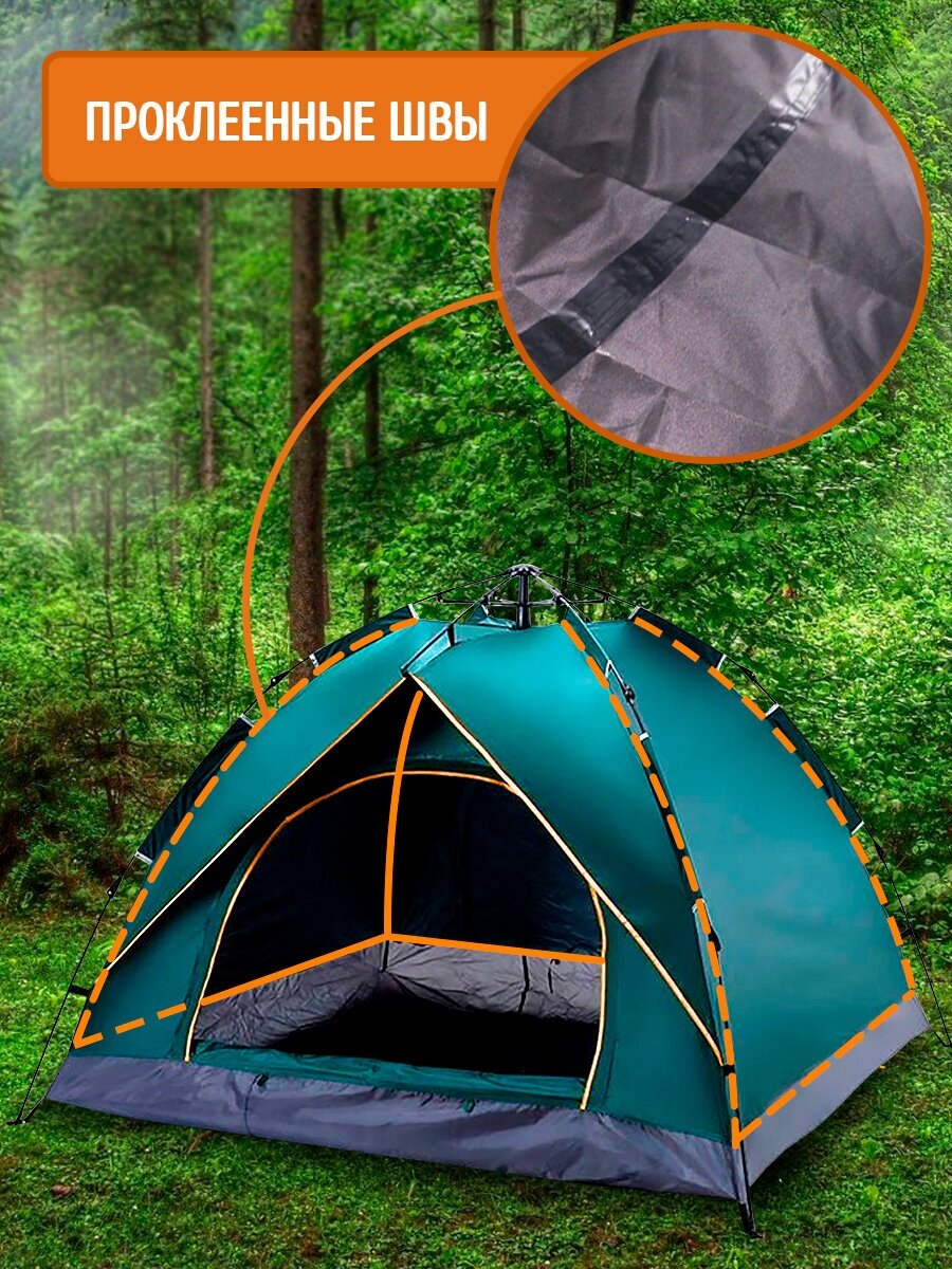 Палатка автоматическая CobraJet зеленая 3-4 местная для туризма и кемпинга, швы проклеены. интересное: