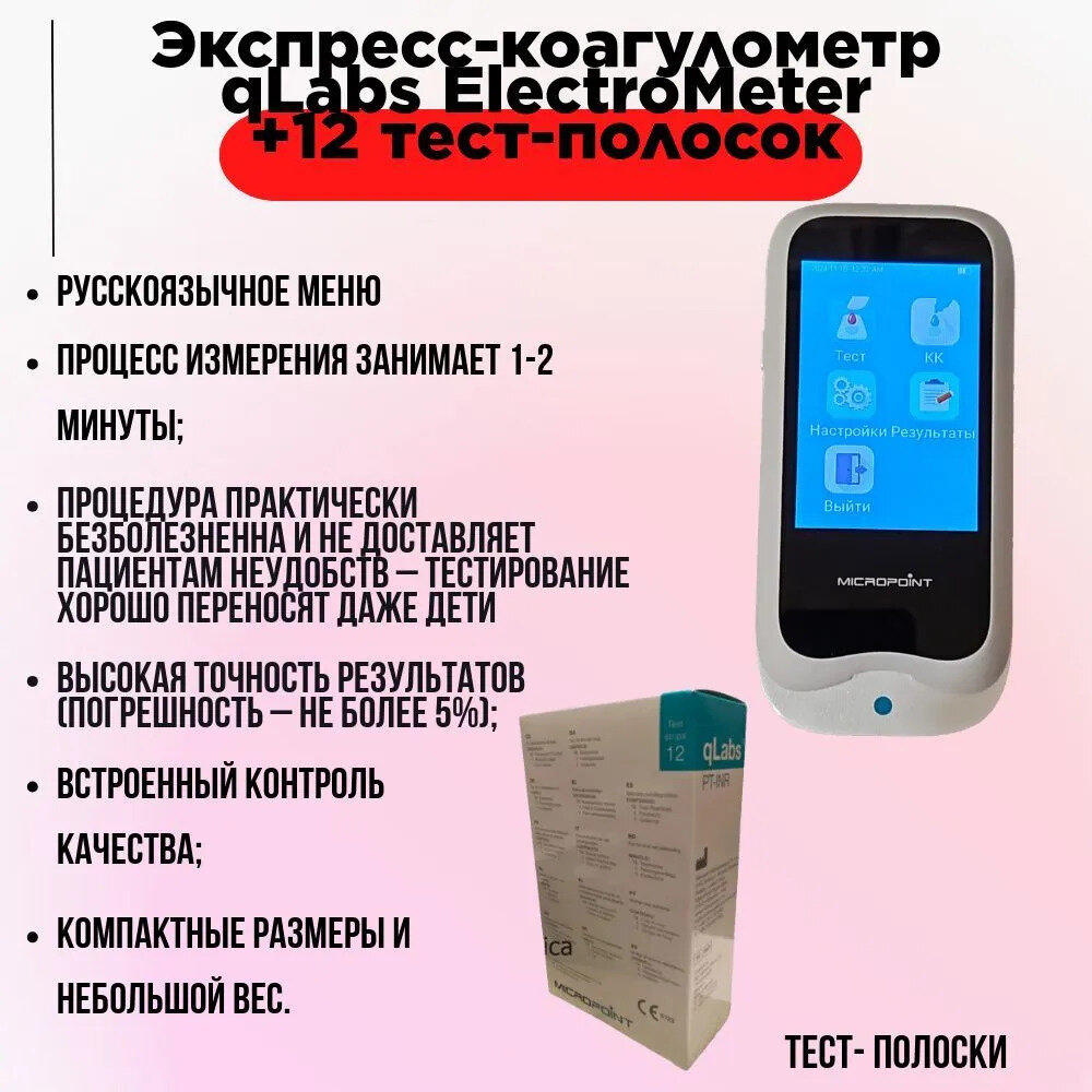 Экспресс-коагулометр qLabs ElectroMeter+12 тест-полосок интересное: