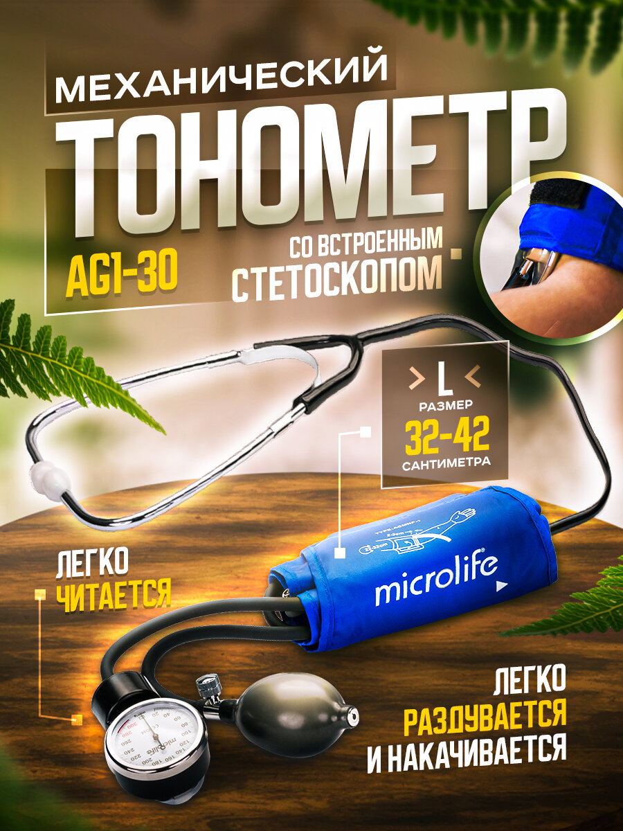 Тонометр Microlife BP AG1-30 механический, встроенный стетоскоп, манжета L . интересное: