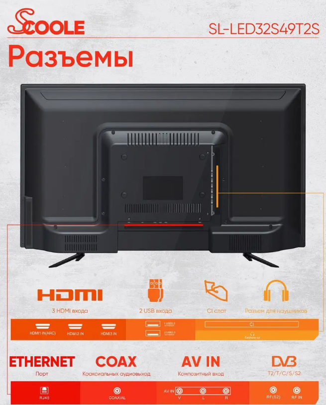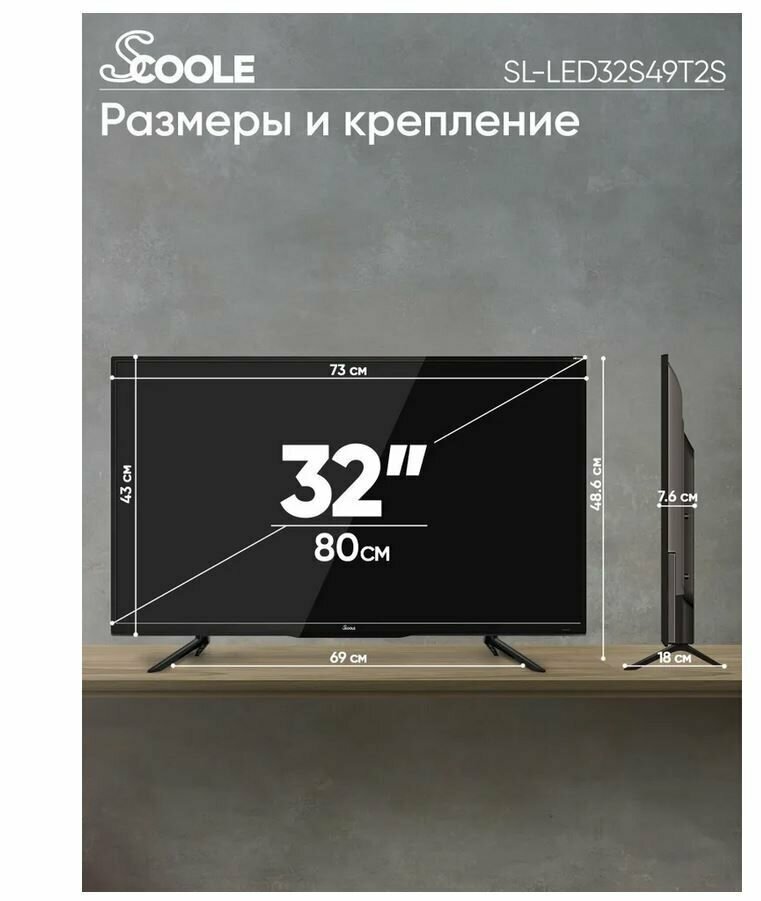 Телевизор SCOOLE SL-LED32S49T2S интересное: