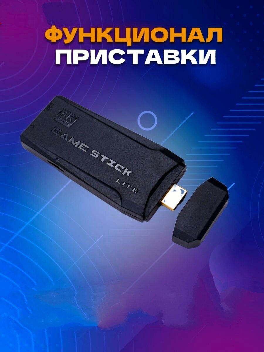 Игровая приставка для телевизора с играми GAME STICK/ Портативная игровая приставка 64 ГБ 20 000 игр (консоль беспроводная 2 джойстика) интересное: