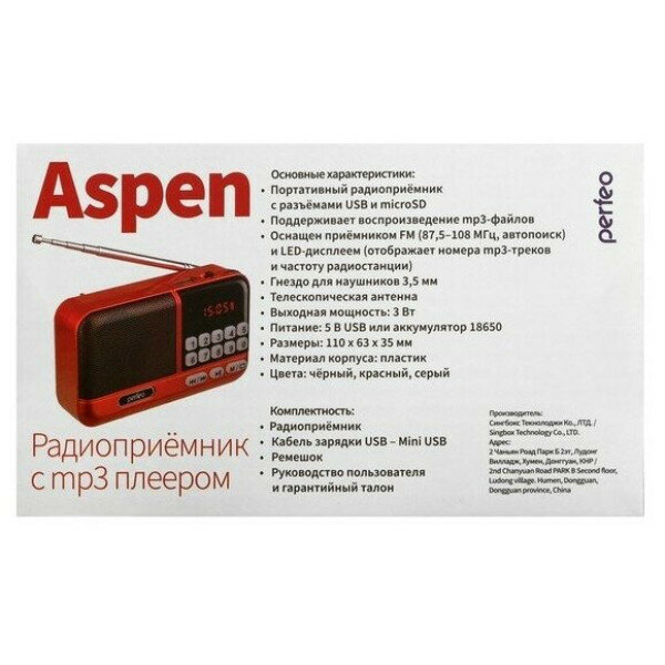 Радиоприемник PERFEO PF-B4058 ASPEN, красный