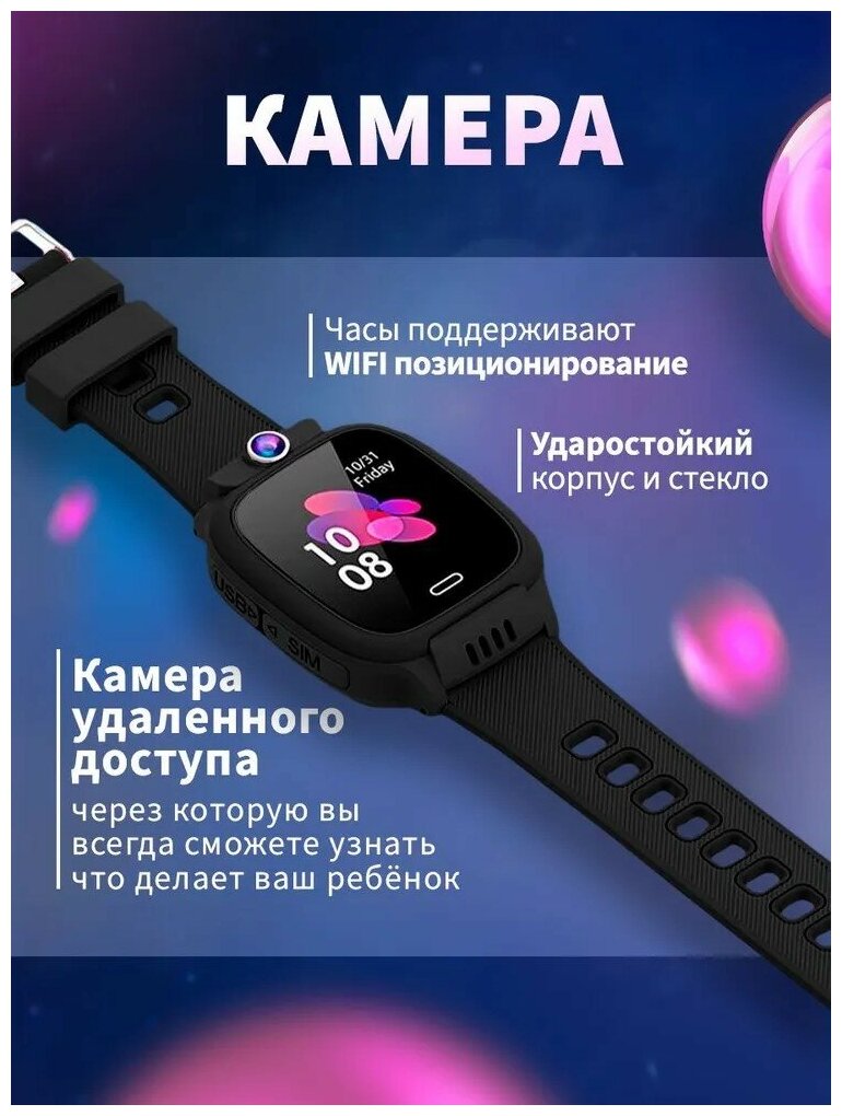 • Детские смарт часы, умные часы детские с сим картой 4G, GPS трекер, камера, сенсорный экран, встроенный будильник, 720mAh, черный интересное: