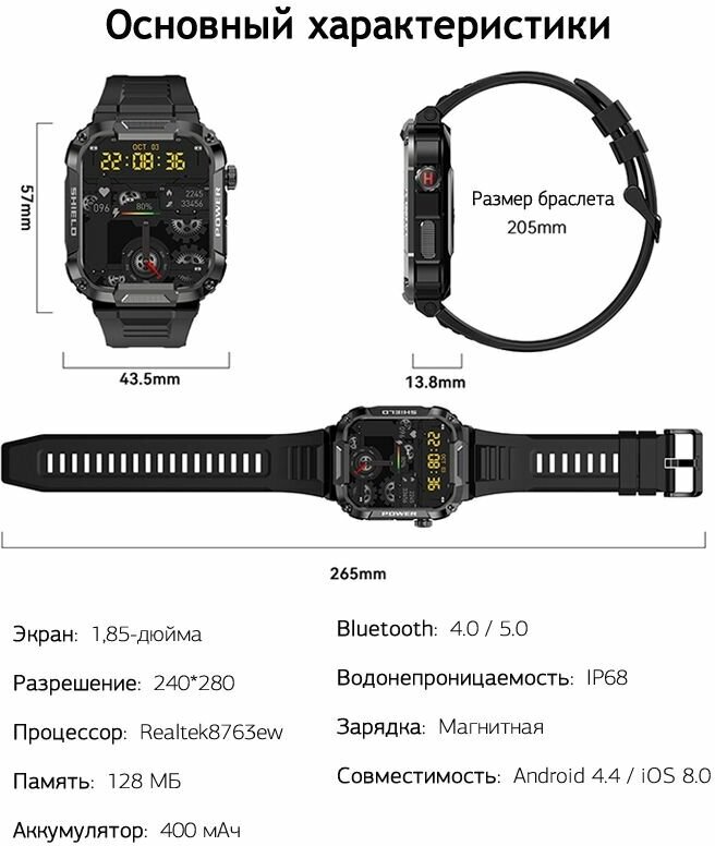Умные часы BandRate Smart BRSMK66BB с счетчиком калорий, секундомером, тонометром интересное: