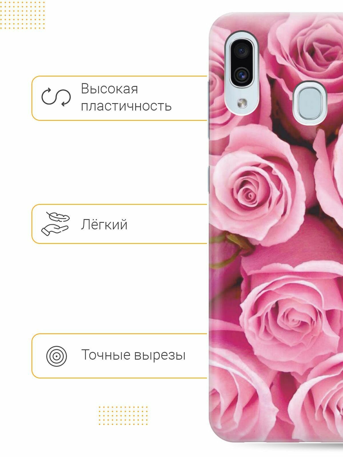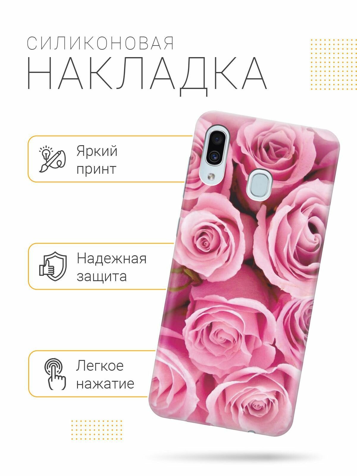 Ультратонкий силиконовый чехол-накладка для Samsung Galaxy A40 с принтом "Букет роз" интересное: