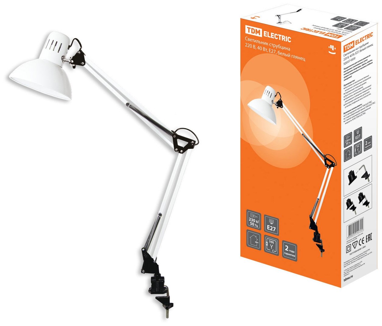 Купить Светильник струбцина 220В, 40Вт, E27 белый глянец TDM SQ0337-0030 (1 шт.)