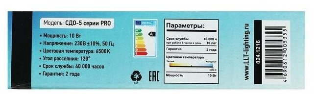 Прожектор светодиодный LLT СДО-5-10 PRO (10Вт 6500К 750Лм), 10 Вт, свет: холодный белый
