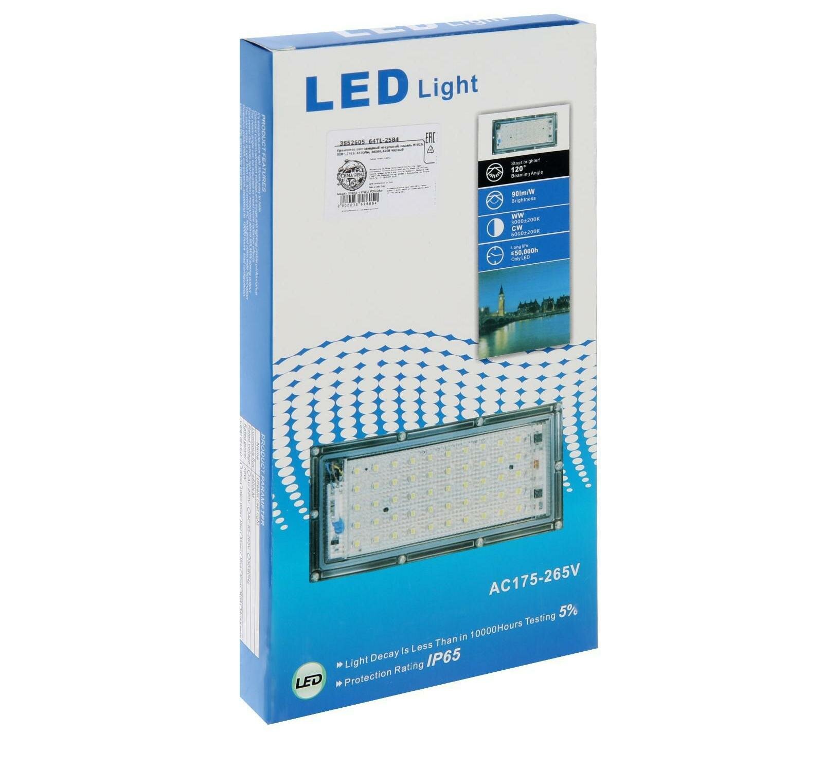 Прожектор светодиодный модульный Luazon Lighting M-02B 50Вт, IP65, 4500Лм, 3000К,220В Черный 3852605 .