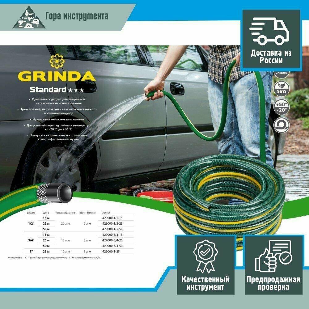 GRINDA STANDARD, 3/4″, 15 м, 15 атм, трёхслойный, армированный, поливочный шланг (429000-3/4-15)