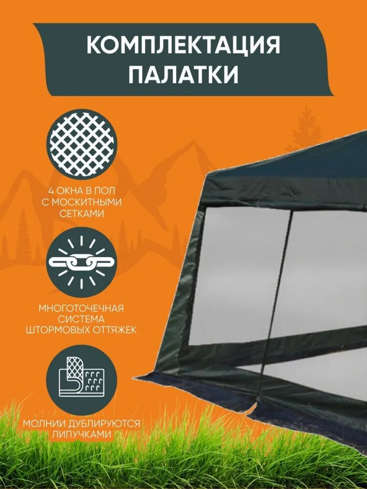 Купить Палатка туристическая с москитной сеткой/ Шатер туристический усиленный для дачи садовый