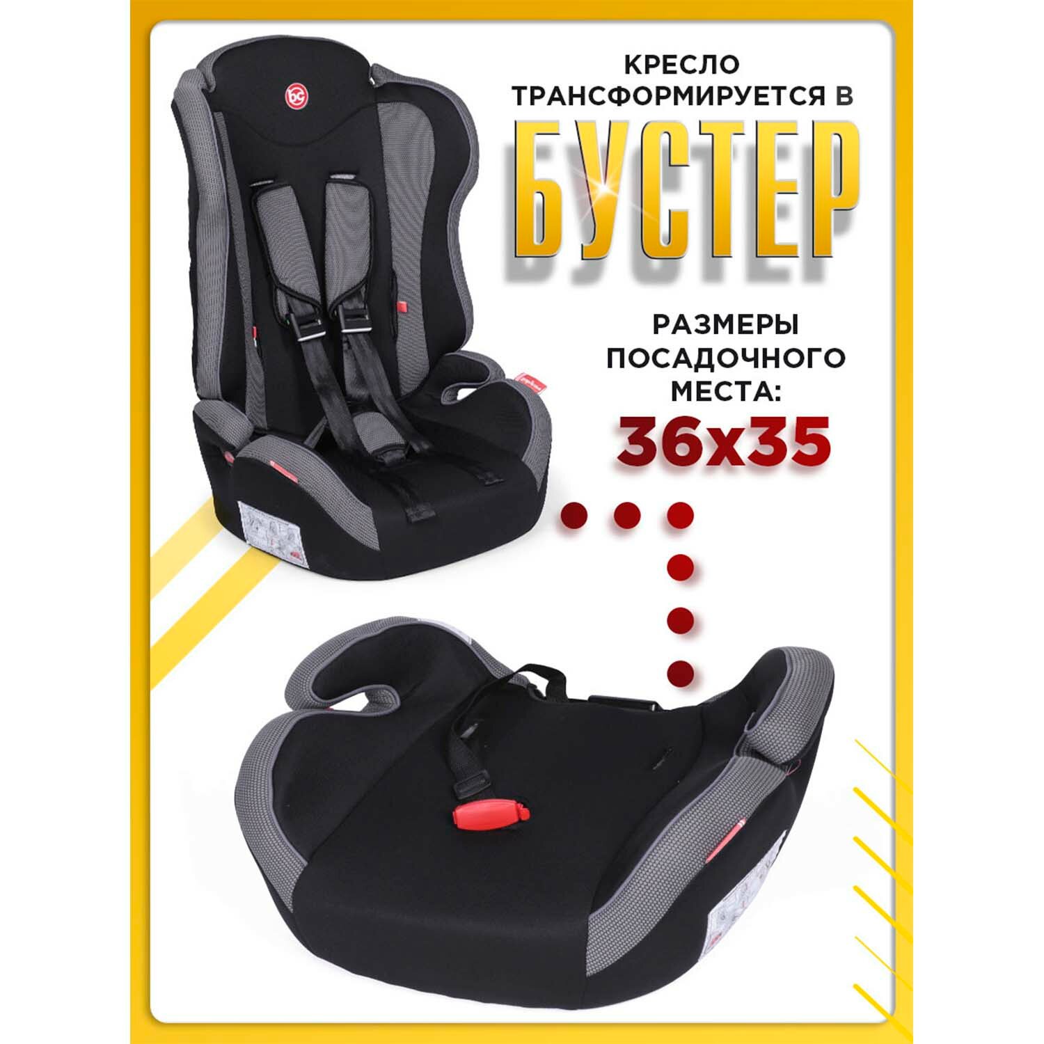 Купить Baby Care Детское автомобильное кресло Upiter(без вкладыша) гр I/II/III, 9-36кг, (1-12лет),черный/серый
