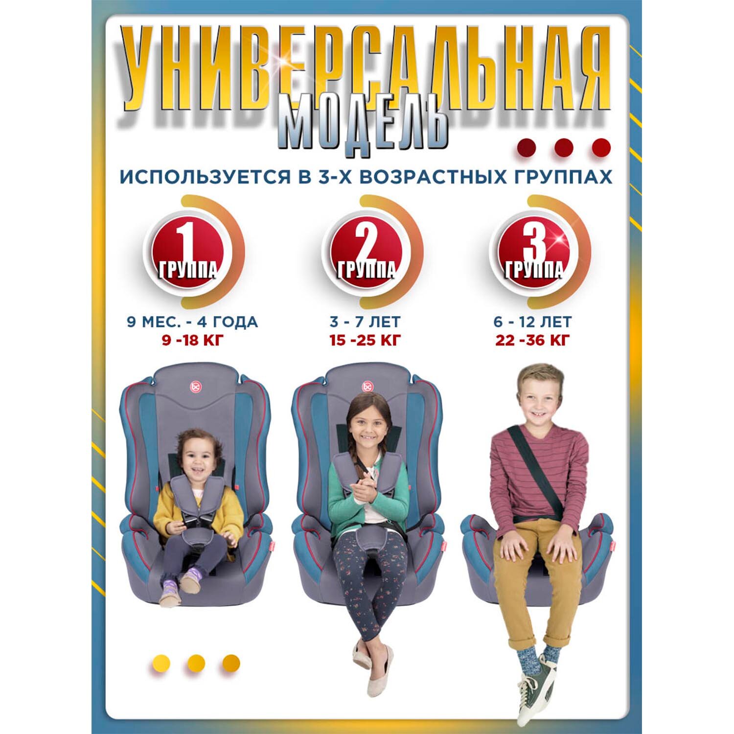 Купить Baby Care Детское автомобильное кресло Upiter(без вкладыша) гр I/II/III, 9-36кг, (1-12лет),голубой/серый