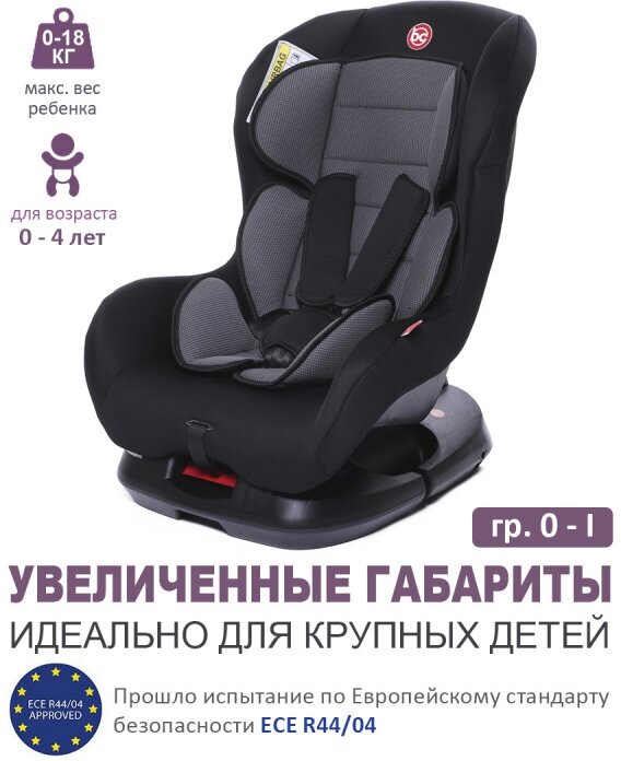 Детское автомобильное кресло Baby care Rubin гр 0+/I 0-18кг0-4 лет Черный/Серый 1008 Black/Grey 100 .