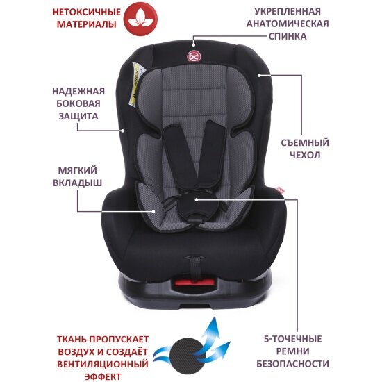 Купить Baby Care Детское автомобильное кресло Rubin гр 0+/I, 0-18кг,(0-4 лет)черный/серый 1023