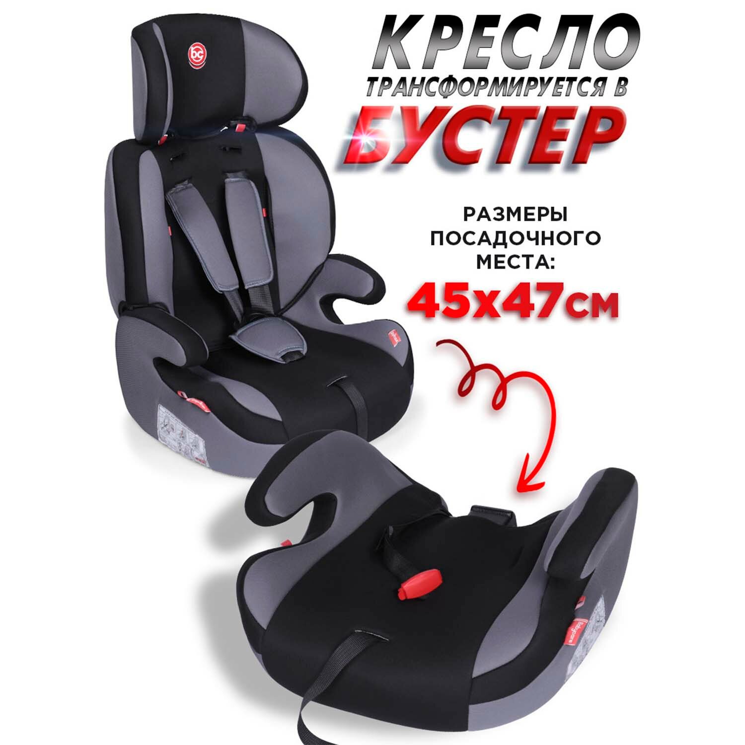 Купить Baby Care Детское автомобильное кресло Legion гр I/II/III, 9-36кг, (1-12лет),черный/серый