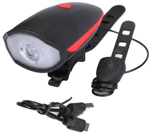 Фонарь велосипедный аккумуляторный светодиодный передний с гудком (оранжевый)