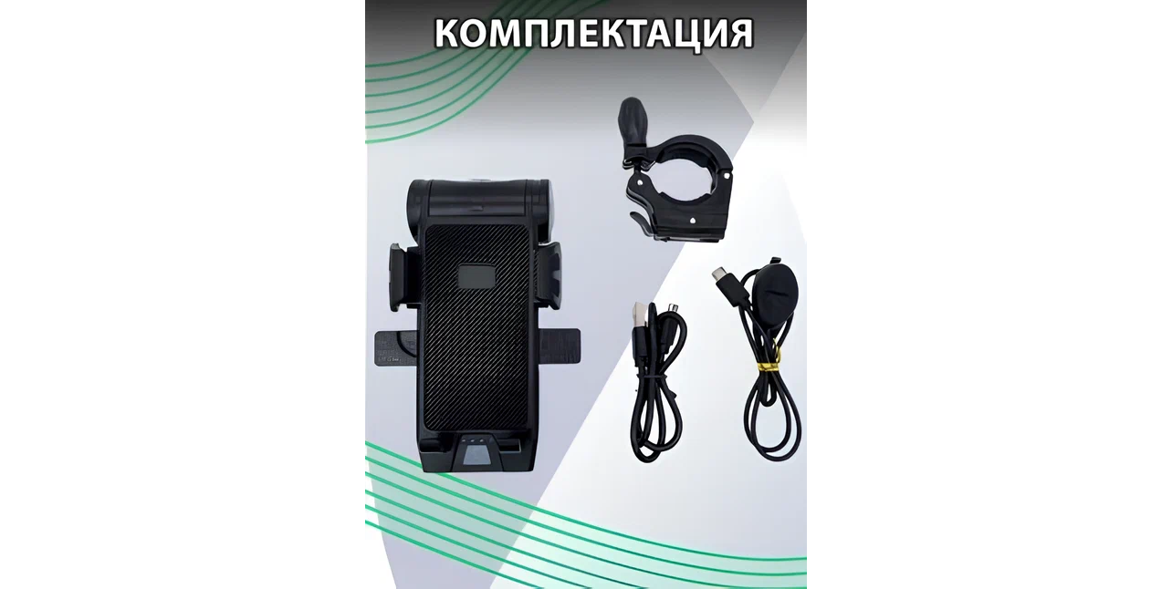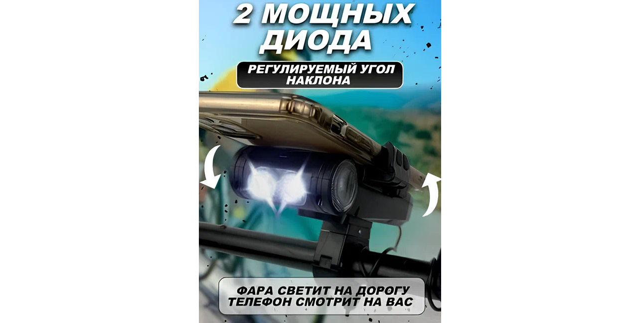 Велофонарь для велосипеда с держателем телефона, встроенным зарядным устройством и звуковым сигналом, цвет черный