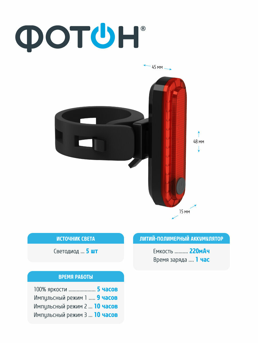 Фотон Фонарь велосипедный аккумуляторный светодиодный задний CLA-650R 24201 интересное: