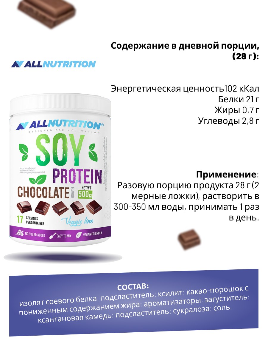 Соевый протеин All Nutrition Soy Protein шоколад 500 гр интересное: