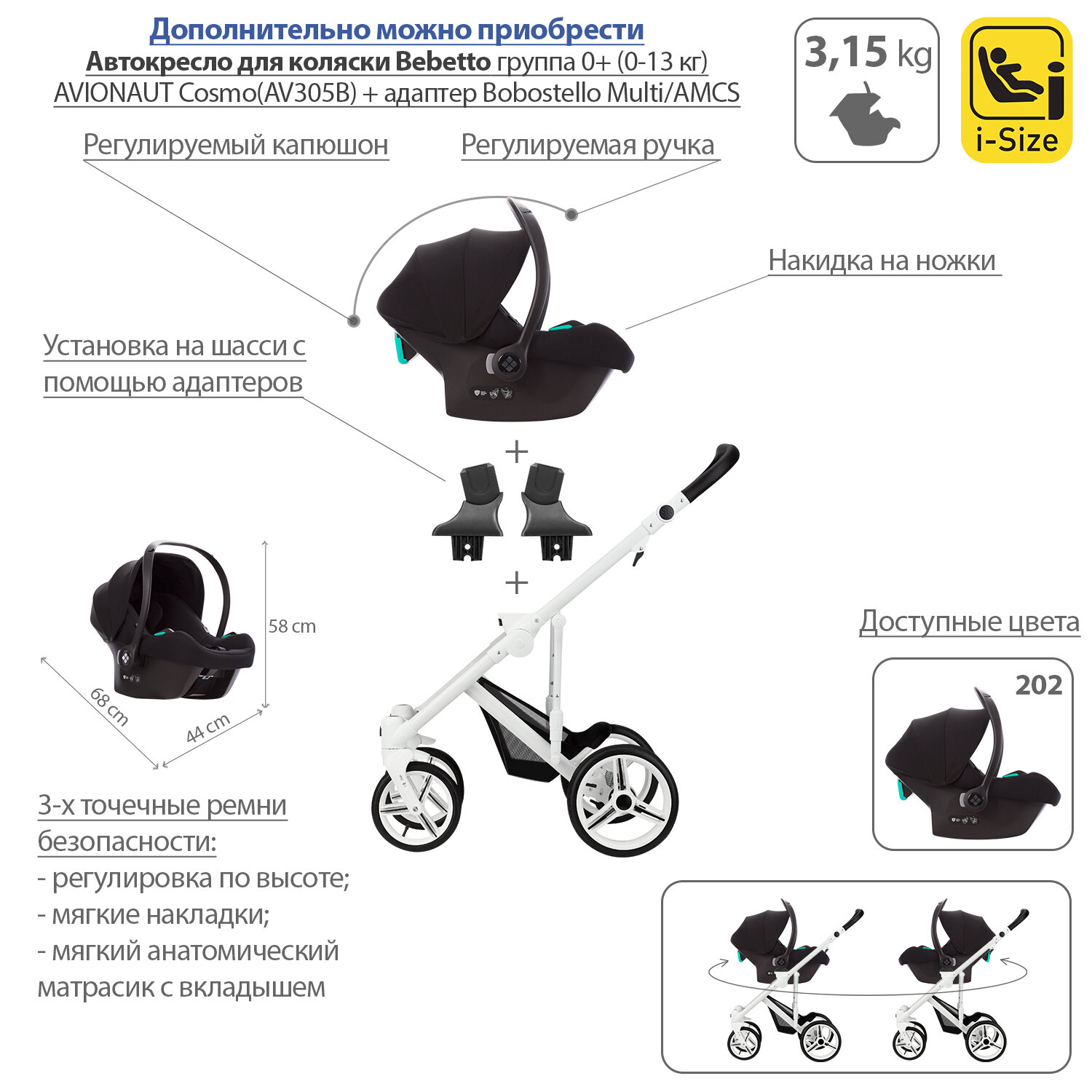 Универсальная коляска Bebetto Magnum 2018 (2 в 1), 202bia, цвет шасси: белый