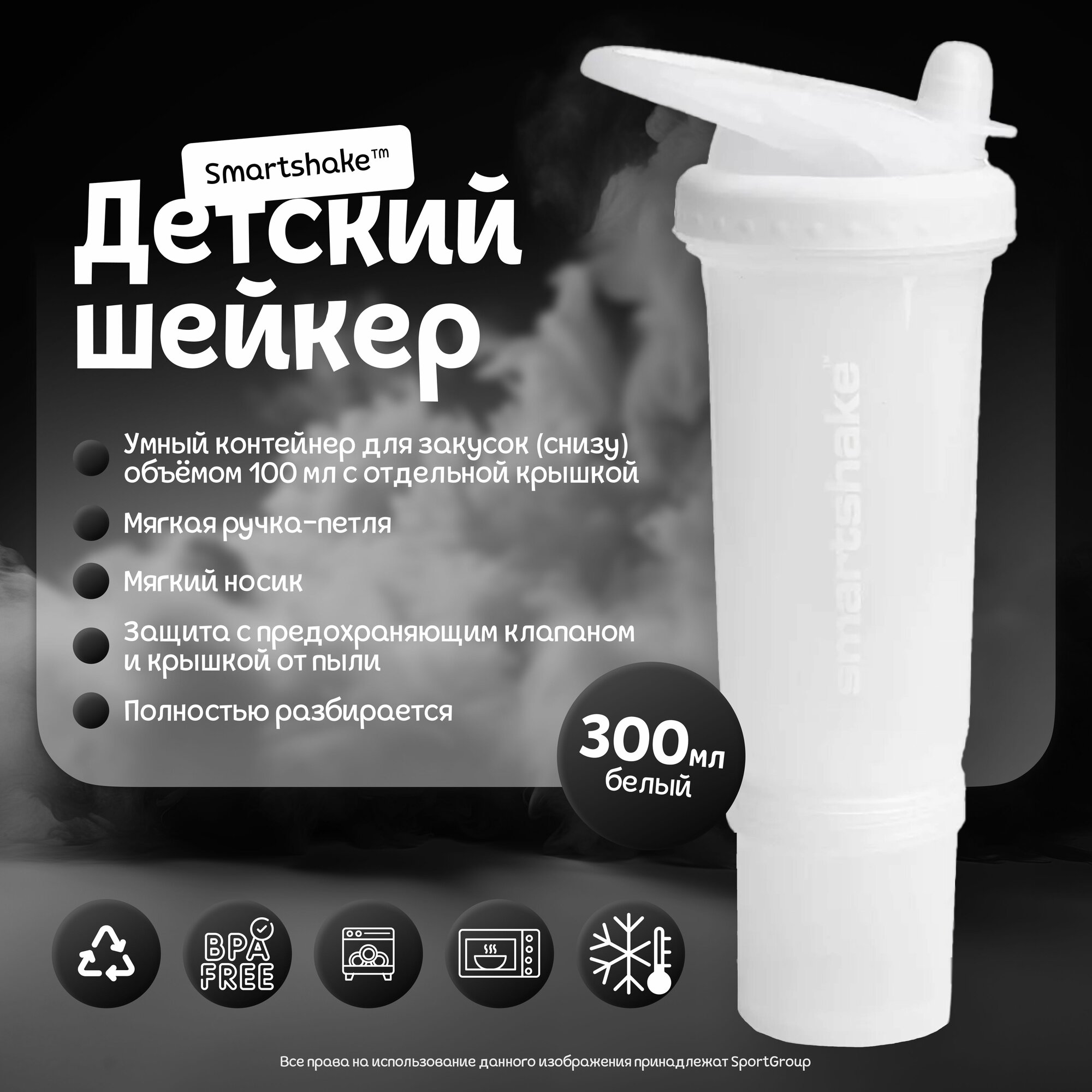 Шейкер SmartShake Revive Junior 300 мл. белый интересное: