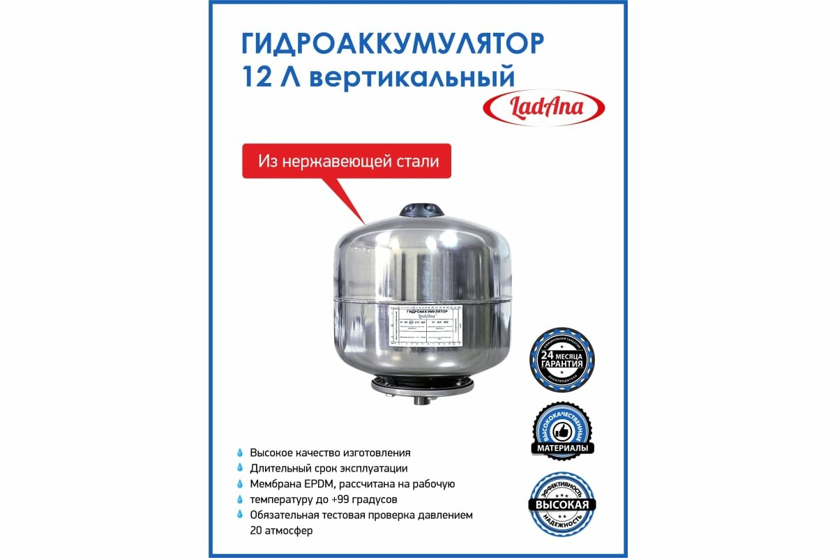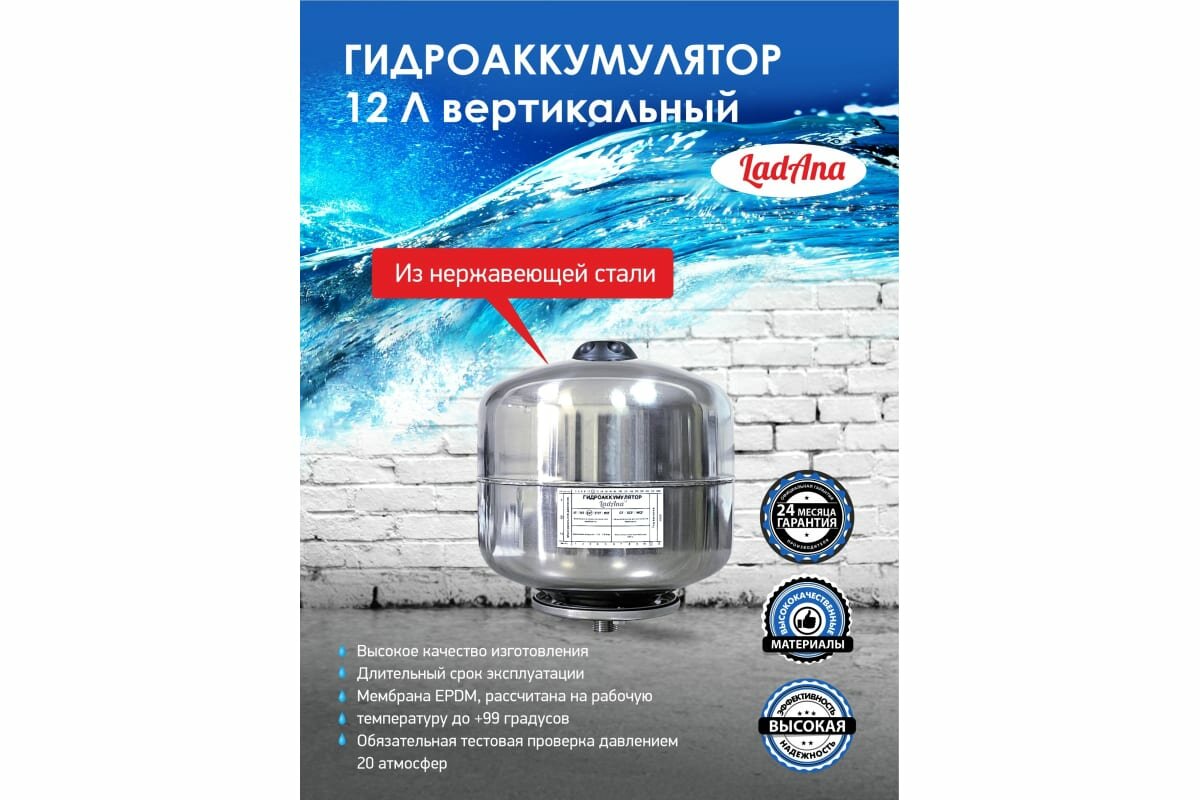 Купить Гидроаккумулятор 12 л вертикальный из нержавеющей стали LadAna 110108002