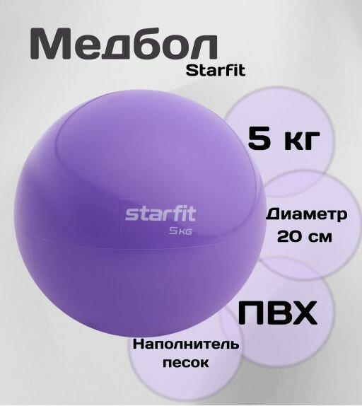 Медбол Starfit Gb-703, 5 кг, фиолетовый пастель