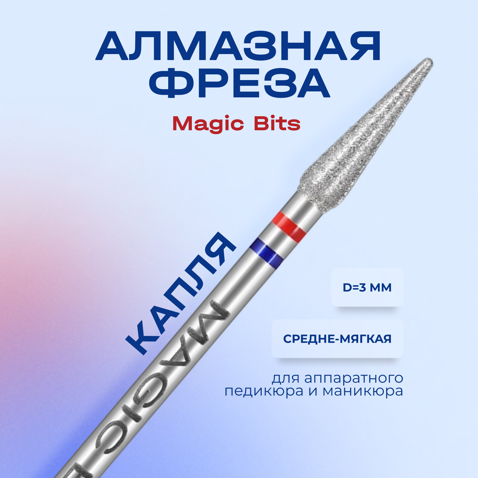 Купить Фреза для маникюра Magic Bits капля, алмазная для педикюра, средняя, красная синяя, 3 мм