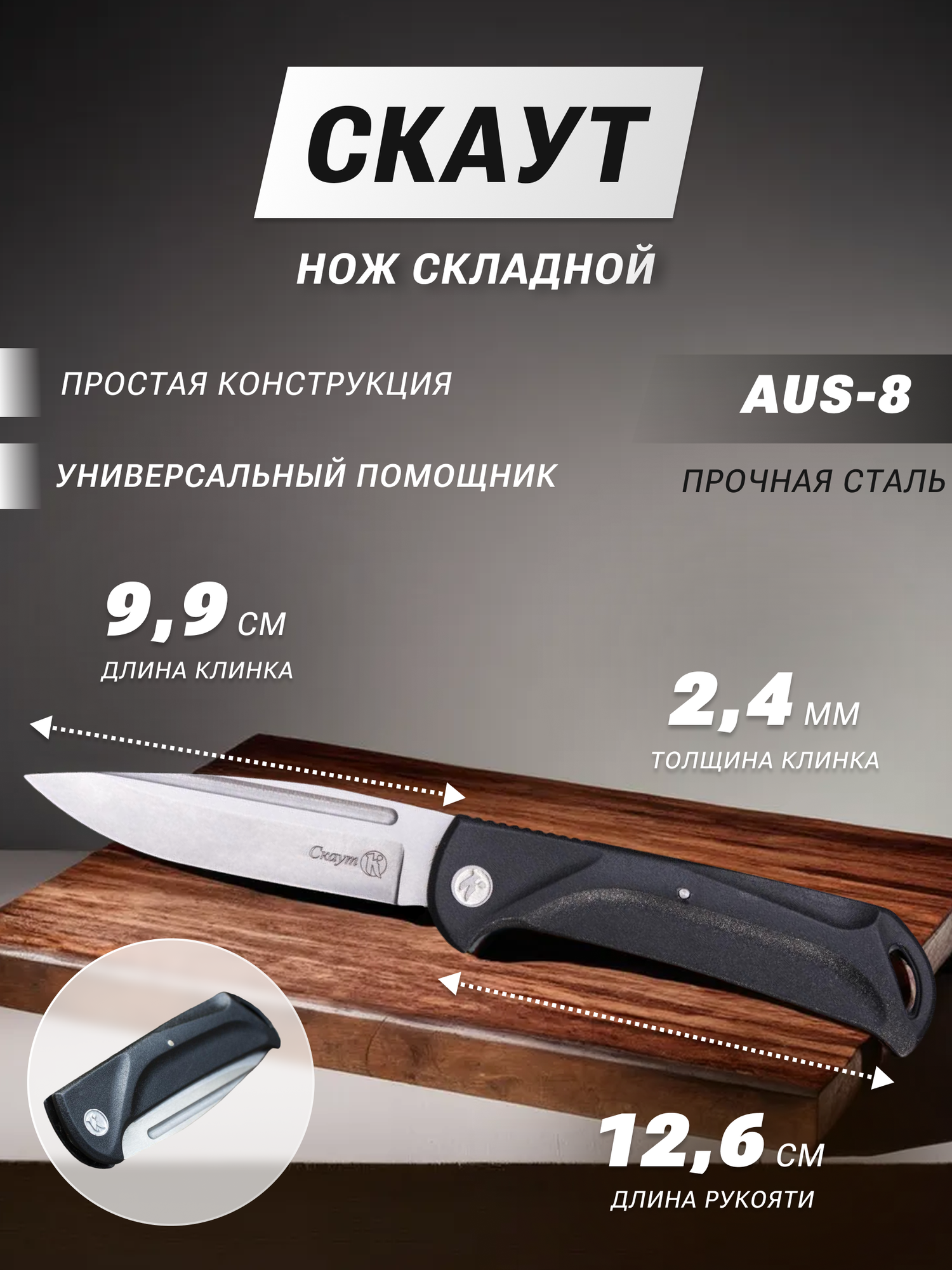 Нож складной НСК "Скаут", серый клинок, ООО "ПП "кизляр" интересное:
