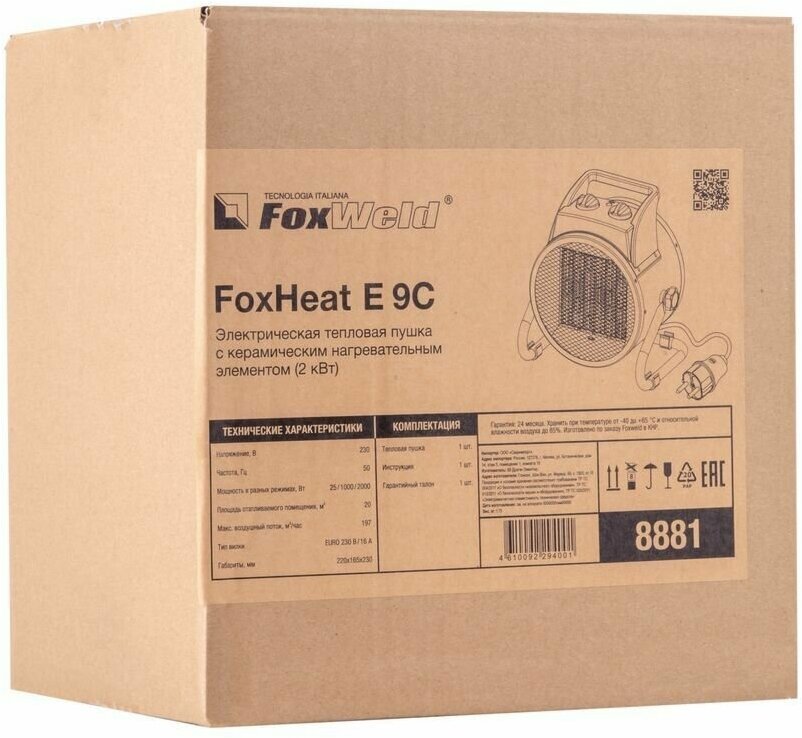 Купить Электрическая тепловая пушка FoxHeat E 9C с керамическим нагревательным элементом (2кВт) (8881)