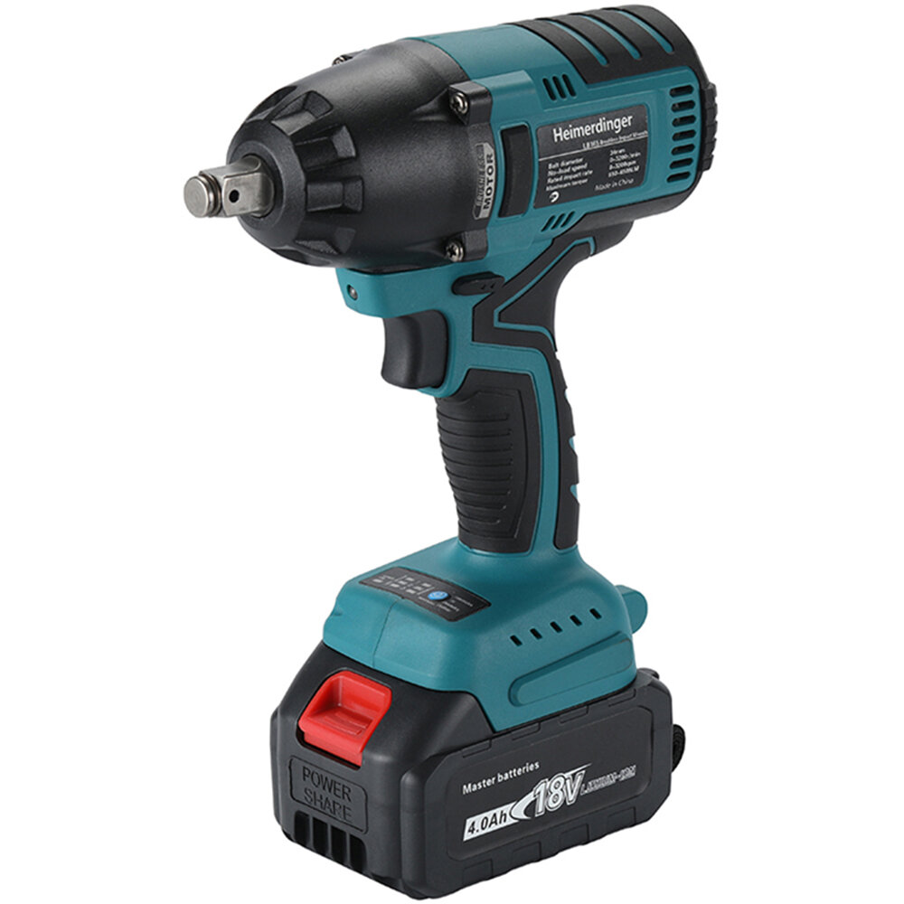 Бесщеточный беспроводной ударный гайковерт Heimerdinger 650 Нм 1/2 дюйма, с двумя батареями 18 В 4,0 Ач в пластиковом кейсе