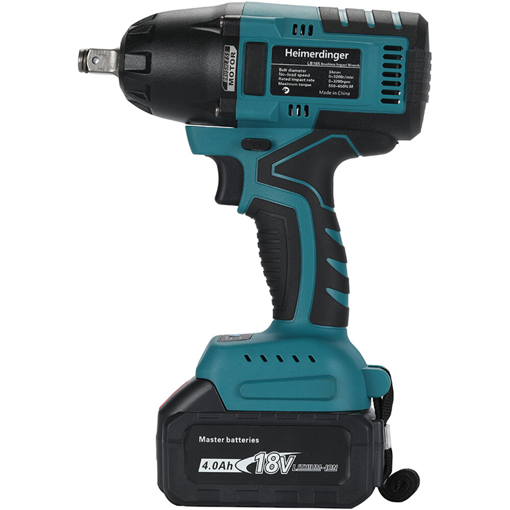 Купить Электрический ударный гайковерт Heimerdinger 650 Нм 1/2-дюймовый, электроинструмент с двумя батареями 4,0 Ач