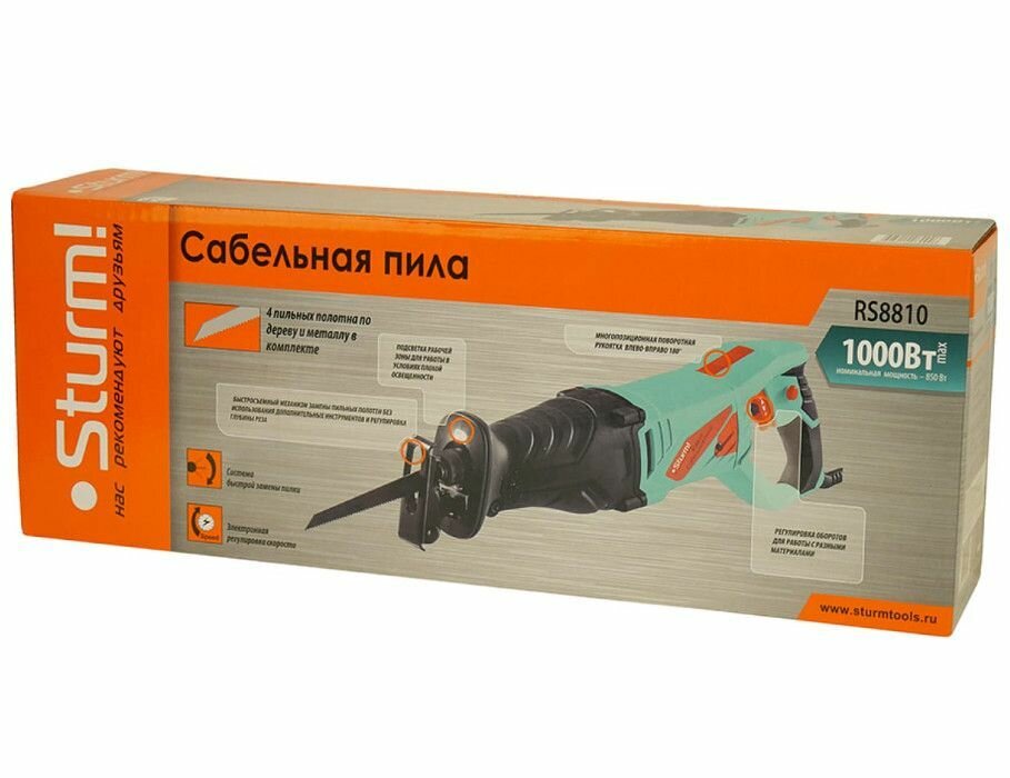 RS8810 Пила сабельная Sturm!, 1кВт, глубина реза: дерево 160мм / сталь 10мм STURM