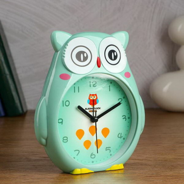 Будильник детский "Совушка" 14.5 х 4 х 16 см, дискретный ход, d=11 см, зеленый