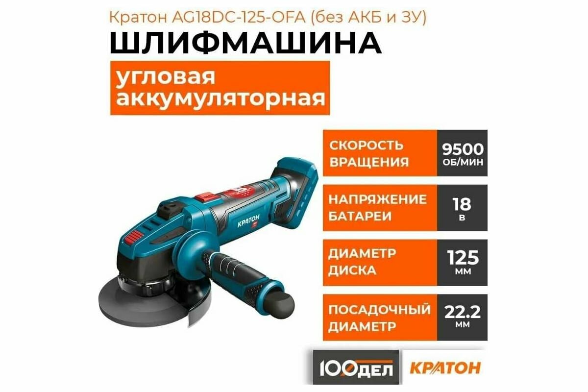 Угловая шлифмашина аккумуляторная Кратон AG18DC-125-OFA (без АКБ и ЗУ) арт. 3 11 01 083 интересное: