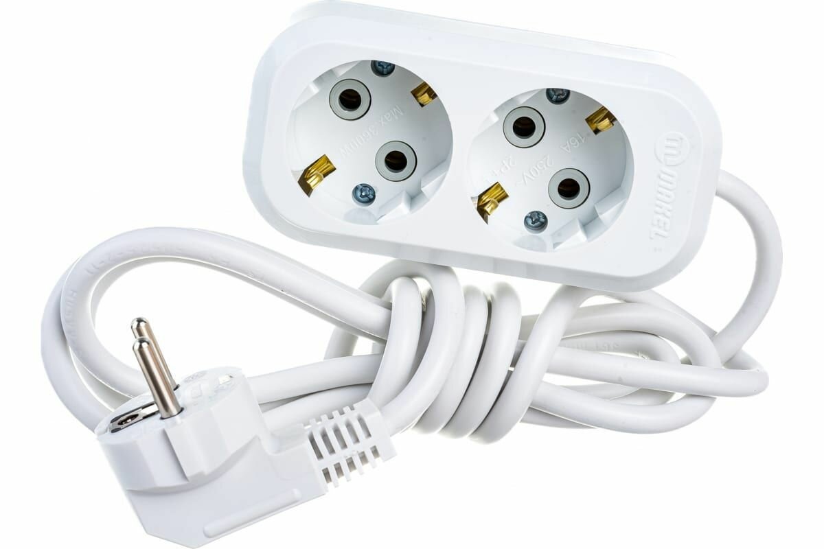 Удлинитель Makel 2 розетки 2 м ПВС 3х1 кв.мм 16 А 2,2 кВт белый (MGP112)