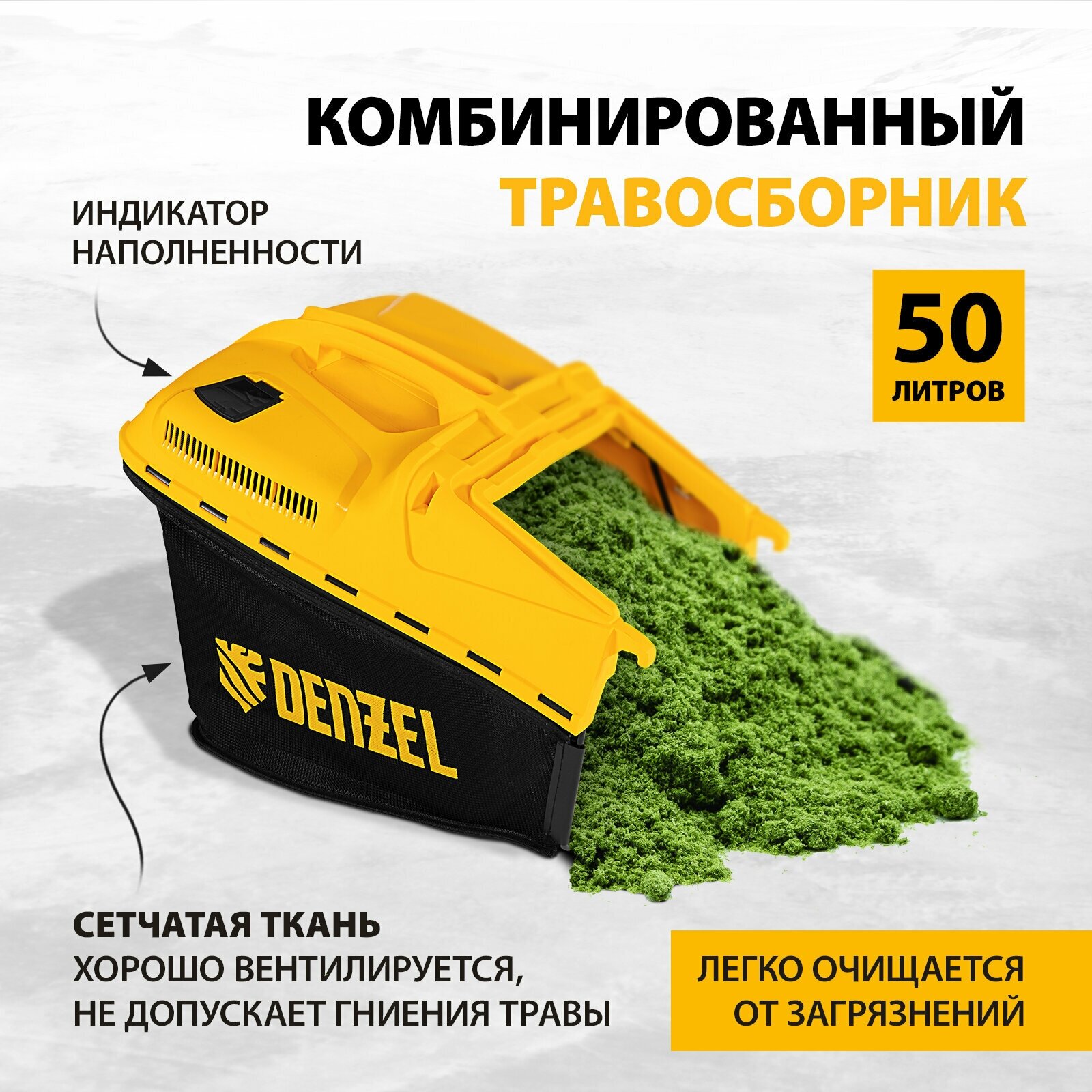 Бензиновая газонокосилка DENZEL GLD-460, 146 куб.см., шир. 46 см, ручн., 7 уров., травосб. 50 л