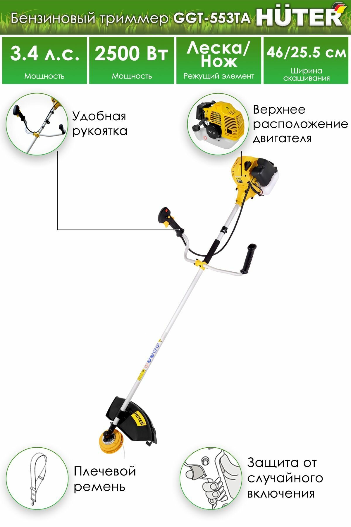 Триммер бензиновый Huter GGT-553TA [70/2/56] интересное:
